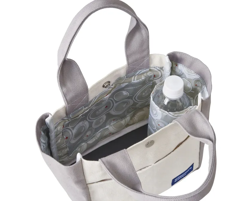 日頃ご愛顧いただいているお客さまへの感謝の気持ちを込めて、特別なアイテムを詰め込んだ、お楽しみ袋「サマーバッグ2021」をご用意いたしました。今年のアイテムは2種類。優しい風合いのリサイクルコットン*を使用したトートバッグは、収納力抜群!ランチボックス等も入るマチの広さと、4つのポケット、さらに水筒などを立てて収納できるボトルホルダーが付いています。カバンの内生地には再生ペットポリエステル繊維*を使用。シロノワールとコーヒーを上から描いた可愛いイラストが施されています。ポーチは、トートバッグと同じ素材を使用。シンプルでいて使いやすいラウンド型で、整理しやすいポケット付きです。また、コーヒーチケット1冊と、お家で楽しめるすっきりとしたコメダのオリジナルアイスコーヒー2本も入っておりお得なセットです。この夏だけの特別が詰まったコメダのサマーバッグ。各店舗数量限定での販売です。数量限定のため限定数に達し次第、予約受付及び販売を終了いたします。この機会をぜひお見逃しなく。