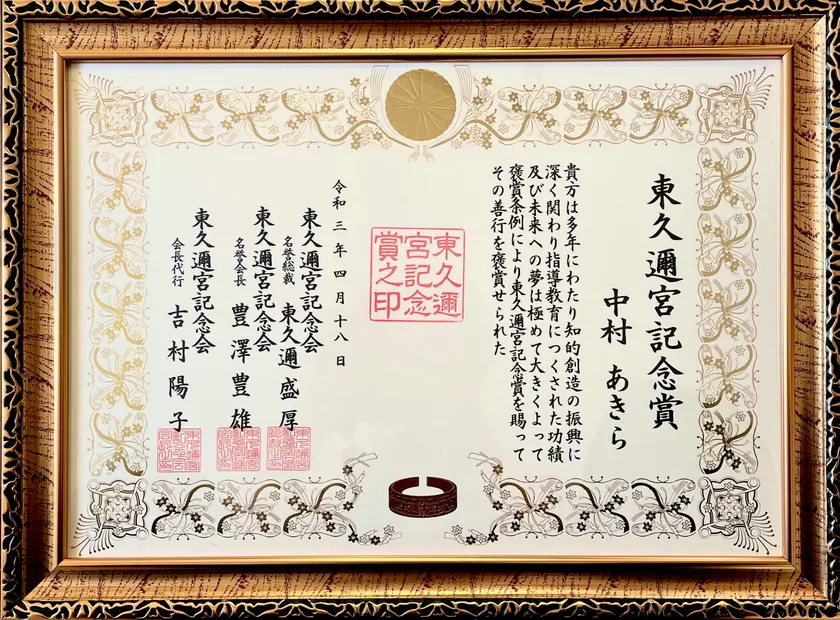 東久邇宮記念賞は、知的財産や発明活動の振興に努められた、有名無名の人々を表彰するもので『大衆のノーベル賞』とも言われています。