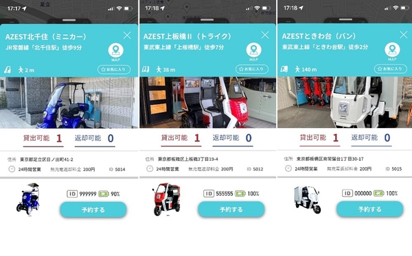 折りたたみ電動バイクのシェアリングサービス「Shaero」、 3人乗り電動トライクと小型EVのシェアリングの運用テストを開始