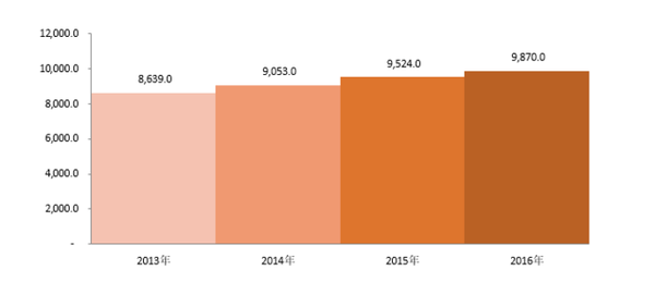 一人当たりの米国医療費、(USD)、2013ー2016年