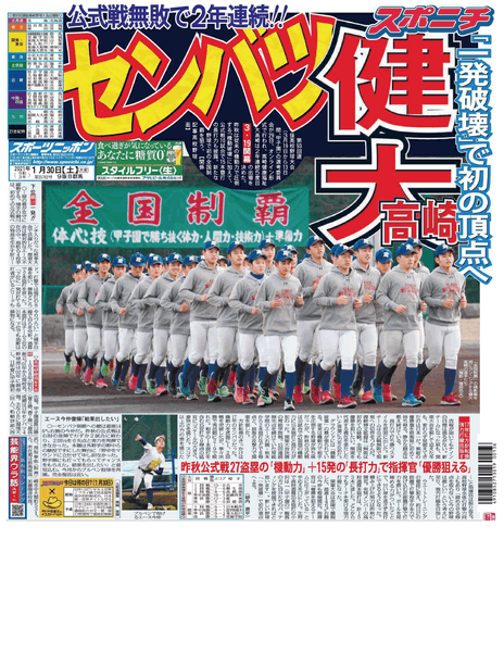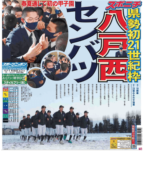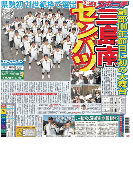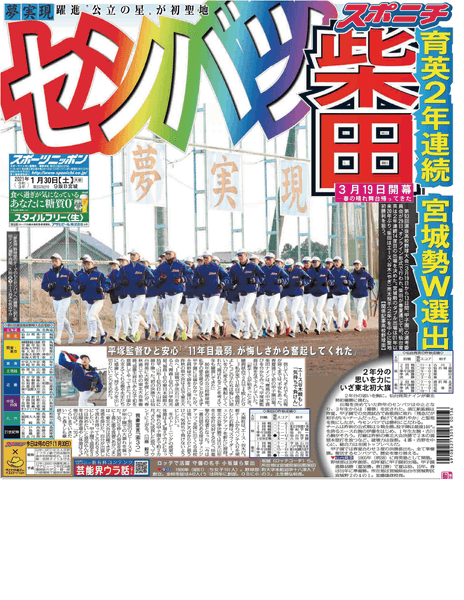 スポーツニッポン新聞社ではセンバツ高校野球大会に出場が決まった下記7地区で1面を飾った1月30日付のバックナンバーを限定販売中です。地域を代表して出場する選手たちの歓喜の瞬間を取材した永久保存版です。ぜひこの期間にお買い求めください!