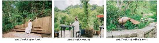 また、ハンモックやウッドデッキなどの居心地の良い癒し空間の造成に加え、「なにもないという贅沢」をコンセプトに、お客様が座ると自動的に音楽が流れる「音のベンチ」や、骨組みのない透明の幕のみで仕切られた「SIKIドーム」を導入しプライベートな寛ぎの時間をお過ごしいただけます。その他、冬には日本初となる「ウィンターガーデン」の造成も予定しています。