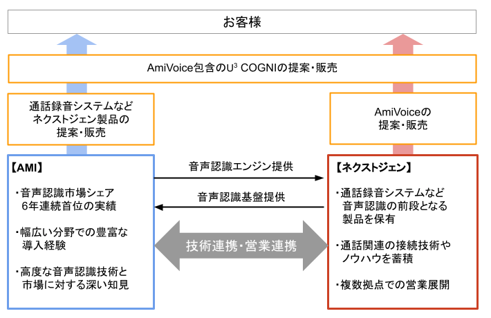 このような実績から、ネクストジェンの通話・音声録音に関する技術と、AMIの優れた音声認識技術と知見の融合および営業面での連携により、サービス性能の向上や相互製品の販路拡大が目指せるものと判断し、このたび、パートナー契約を締結するに至りました。