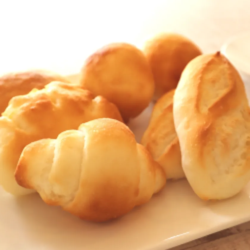グルテンフリーのパン生地は通常はゆるく、型に流し入れて焼成するのが主流の作り方ですが、「まるめるグルテンフリーパンミックス」では、通常のパン生地のように成形ができるため、丸いパンやテーブルロールなど、お好みの形のパンを作れます。