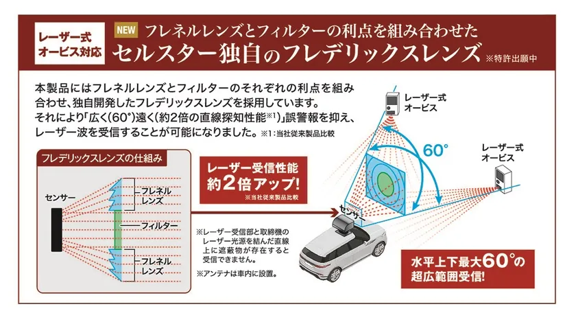 セルスター独自のフレデリックスレンズの採用で 受信性能が約200%(2倍)アップした レーザー式オービス対応レーザー受信機「AL-02R」を 発売いたします