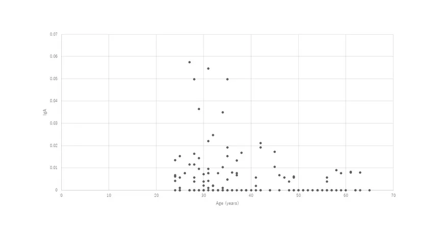 この研究対象者(24-65歳、男性:101、女性:36)の方たちの唾液を採取し、ELISA法を構築し新型コロナウイルスに対する交叉IgA抗体を調べました。特に、新型コロナウイルスの感染に重要なS蛋白のS1サブユニットに対する交叉抗体を調べることで、新型コロナウイルスの生体への結合を阻止する抗体を検出するため構築されています。