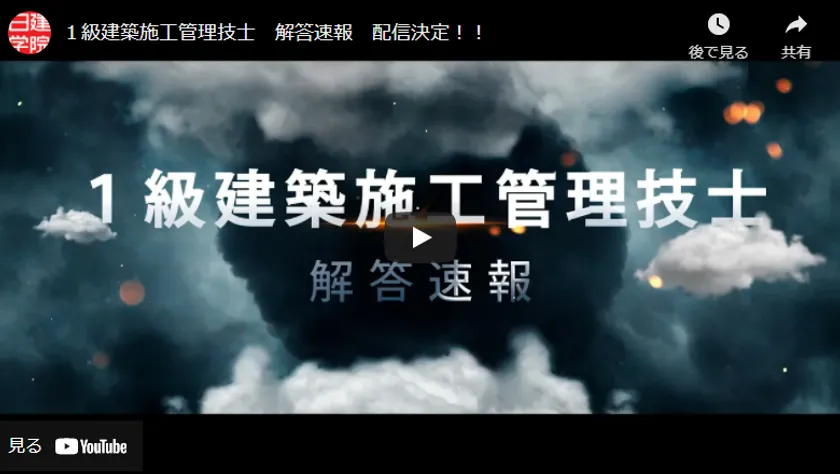 1級建築施工管理技士 解答速報 配信決定!プロモーションVTR(YouTube)