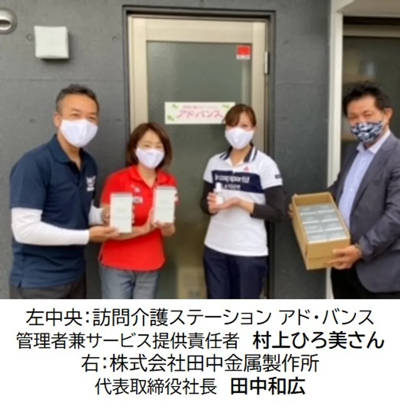 株式会社田中金属製作所が、携帯型オゾン水生成器『オースリーミスト』を、愛知県名古屋市の訪問介護ステーションアド・バンスに無償提供し、約1か月が経ちます。この度、常に高い感染リスクがある中で働く介護士の方たちがどのような場面でオースリーミストを使われているかなど、ヒアリングを行いました。コロナ禍で介護をされている方にとって、当社の製品が負担軽減につながると強く感じることができました。実際の介護現場での活用事例をご紹介するとともに、苦労されている点も知っていただくきっかけになればと考えています。