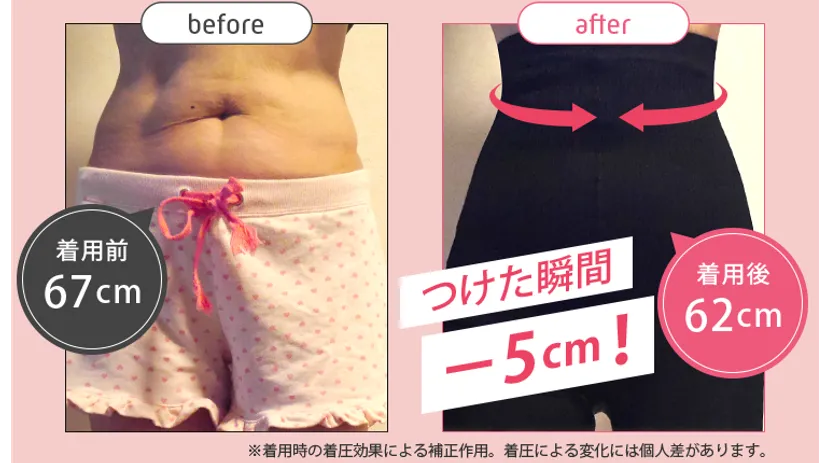 スパンデックス15%の強力な加圧力でウエストから脚までオールインワンで引き締めて、まっすぐバランスを整えることで、スッキリとまっすぐを同時に実現してくれる今までにない着圧レギンスです。