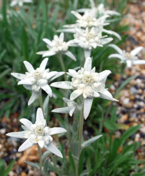 ヨーロッパアルプス、チロルやバイエルン地方の標高3,000m~3,500mの日当たりのよい岩場や草原に生育する多年草です。高さは、5cm~25cmほどと生育環境によって異なります。エーデルワイスとは、ドイツ語で「高貴な白」という意味です。当園に咲くエーデルワイスは、6月下旬頃までお楽しみいただける見込みです。