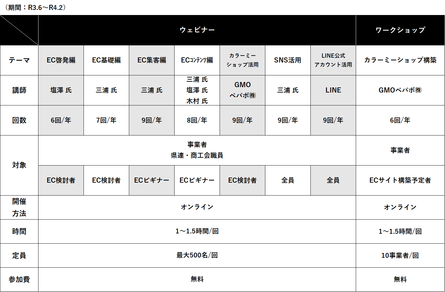 開催日:下記スケジュール参照