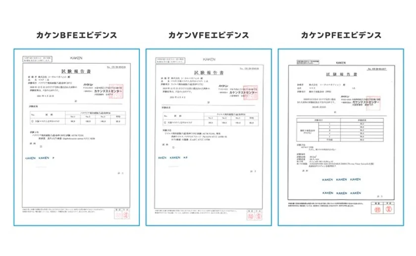 フィルター性能は一般社団法人カケンテストセンターの各捕集効率試験で99.9%カットの試験結果がでています。
