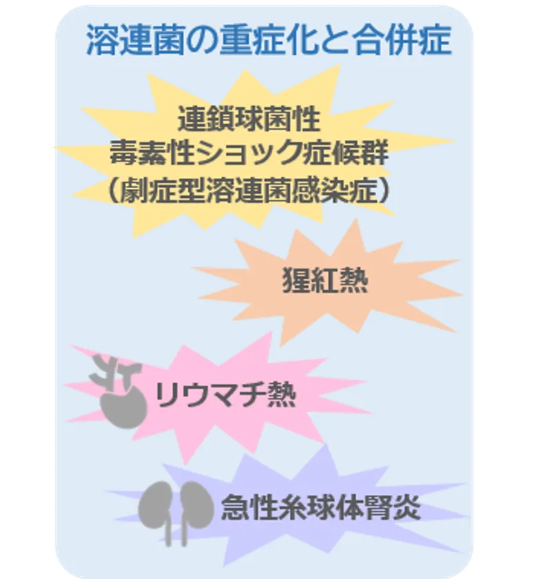 溶連菌の感染症では、まれに重症化したり合併症が起こることがあります。
