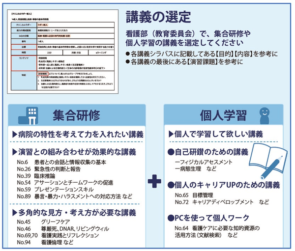 ① 集合研修、個人学習の講義を選定