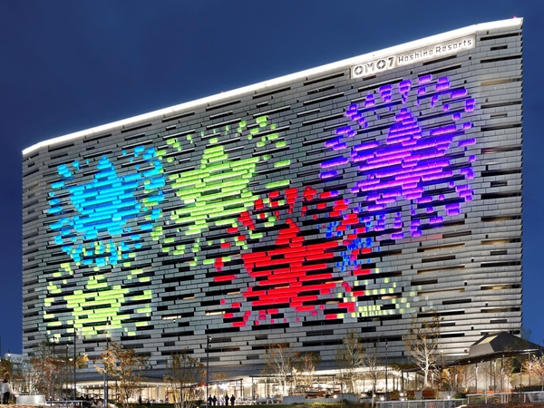 OMO7大阪では、ネオンアートや光の演出で紅葉狩り気分を満喫できる「PIKAPIKA紅葉ナイト」を開催しています。これは、ガーデンエリア「みやぐりん」で、秋の夜風を感じながらたこ焼きとクラフトビールを味わい、大阪らしいテンションの上がる紅葉狩りを満喫できるイベントです。本イベントでは、ホテルの外装を覆う膜一面に、赤色や黄色、橙色に浮かびあがる紅葉の様子を映し出します。また、新世界や道頓堀のネオン看板から着想を得た「なにわネオンアート」や、ご近所さんのたこ焼きとクラフトビールが楽しめる「湯上がりご近所スタンド」、ホテルの外装膜に映し出される光で表現した紅葉など、他では体験できない紅葉狩りを提案します。
