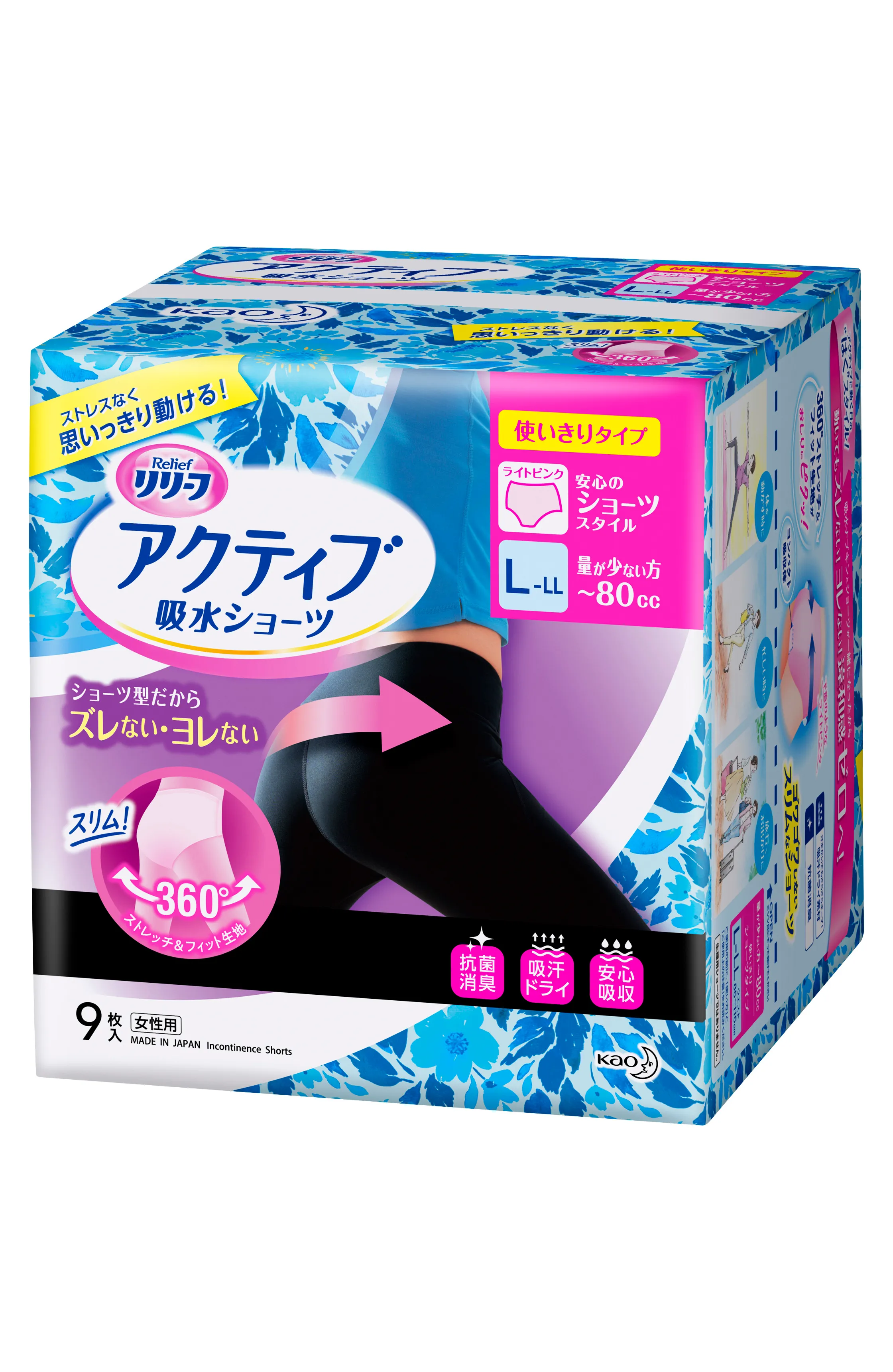 2021年4月10日、大人用尿ケアブランド「リリーフ」から、アクティブに毎日を過ごす活動的な女性に向けて、ストレスなく思いきり動ける『リリーフ アクティブ吸水ショーツ』を発売。吸水ナプキンとショーツが一緒になっている「はくスタイル」の新しい吸水ケアです。なめらかな伸縮生地で、どんな動きにも360°ストレッチ&フィット。ズレたり、ヨレたりせずに、ストレスなく思いきり動けます。超コンパクトな吸収体により、ふだんの下着のようなはき心地を実現いたしました。吸汗ドライ素材により、動いた時の汗などの水分も生地が吸収するので、肌をさらさらドライに保ち、快適にすごせます。運動時だけでなく、旅行や忙しい時にもおすすめです。抗菌消臭機能でニオイも気になりません。花王リリーフは、アクティブなシニアの生活をより豊かにできるよう、応援してまいります。
