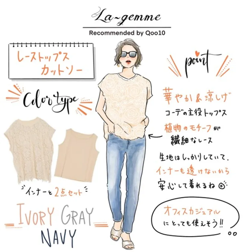 人気のコーナー、Qoo10 コーデ『今日のりおポチ』では、内田理央さんのこの春のおススメファッションアイテムとしてLa-gemme(ラジエム)のレース トップス カットソーが紹介されました。