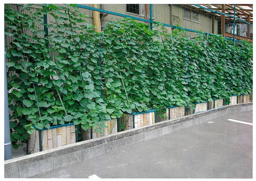 これは、空調設備のフル稼働で真夏の電力を大量消費するこの時代に、自然の力で暑さを和らげてくれる『グリーンカーテン』として最適でした。