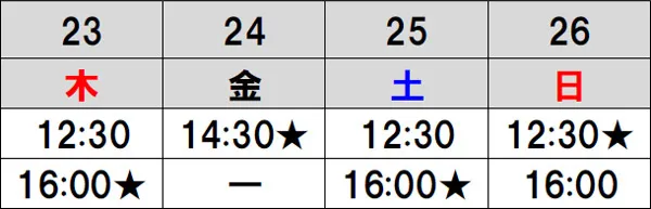 日程 2021年9月23日(木・祝)~26日(日)