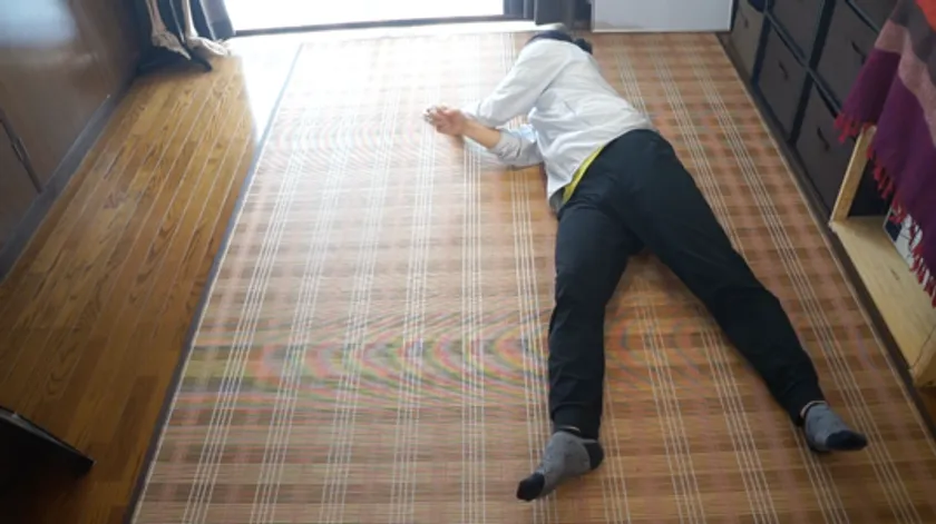 「あたりまえヨガ」は全3部構成です。第1部:「寝返り・起き上がり編」、第2部:「四つ這い・立ち上がり・坐位編」、第3部:「立位・歩行編」です。それぞれの内容は連続していて、全ての回を通して受講することで日常生活に必要な効率的な動作を習得できます。そもそも効率的な体の使い方とはどんなものなのか、寝返りを例に挙げます。