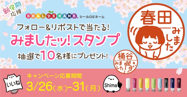 入園・入学準備グッズのECサイト「シールDEネーム」を運営する株式会社サンアドシステム(本社:大阪府大阪市、代表取締役:山根 昭二)は、公式X(旧Twitter)アカウントにて入園入学準備応援「フォロー&リポストキャンペーン」【みましたスタンプ 10名様にプレゼント】を2025年3月26日(水)から3月31日(月)まで実施します。