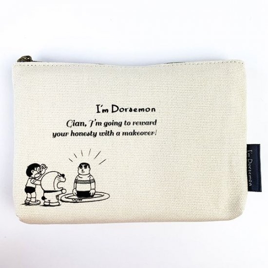 サイドには、I'm doraemonのロゴタグがついています。シンプルですが、小物が分けて入れられて機能的なポーチです。