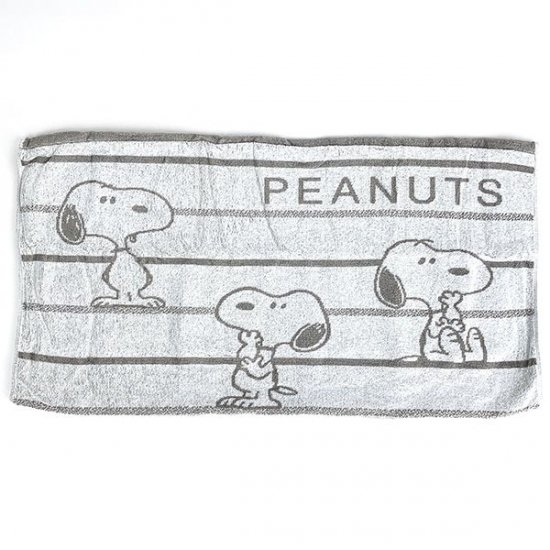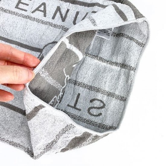 タオル素材の、スヌーピーの枕カバーです。ライトグレーにポーズの違うスヌーピーが並んだシンプルなデザインなので、布団カバーとも合わせやすいですよ。