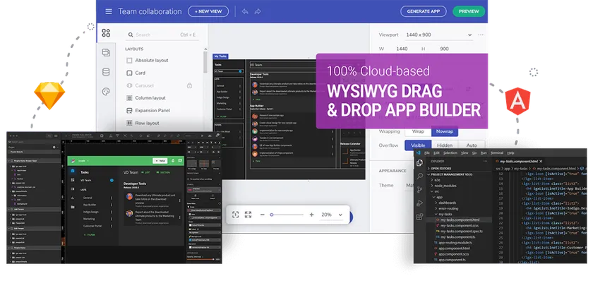 Indigo.Designは、デザイナーと開発者が共通して使用できるクラウドベースのプラットフォームを提供し、UI/UXデザインをリアルタイムに構築し、反復することができます。Indigo.Designは、デザインからコードまでのアプリ制作プロセス全体をカバーし、効率化することで、アプリケーションの早期市場投入を妨げる一般的なミスステップを排除します。