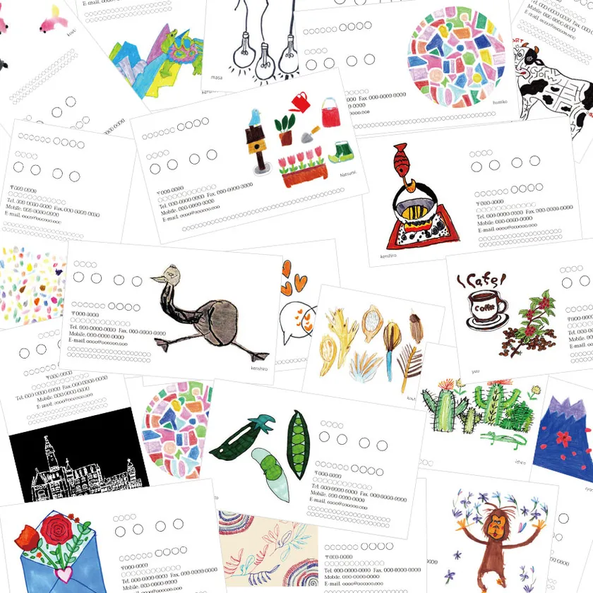 アート作者も増え、障がいのある方のオリジナリティあふれた絵柄が豊富になっているため、名刺デザインを大幅リニューアルすることになりました。販売方法はこれまで通り、お客様のニーズに合わせて100種の中からお選びいただけるものとなっております。印象的なデザインが多く、作家もバラエティに富んでいるため、利用されるお客様にとって、100通りを味わう楽しみも、好みの画風をセレクトする楽しみも、さらに倍増したものとなっています。