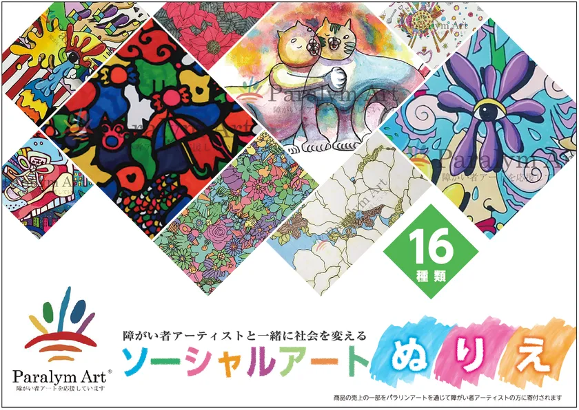 「ソーシャルアートぬりえ」の特長は、一般社団法人障がい者自立推進機構(パラリンアート)に登録されている障がい者アーティストによるアート作品(絵画・デザイン)を下絵に採用している点です。