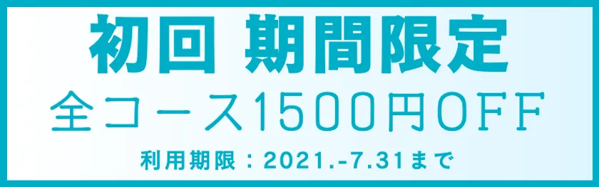 オープン記念として全コース対象、1,500円オフを開始します。2021年7月31日(土)までの限定企画です。