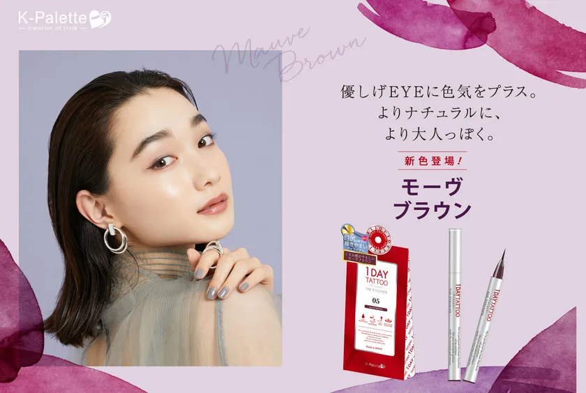 上質なスタンダードアイライナー 「K-パレット 1DAY TATTOO プロキャスト ザ・アイライナー」から、新色「モーヴブラウン」が登場です。ダークブラウンにパープルとグレーをMIXした「モーヴブラウン」は、やりすぎ感がなく、でもきちんと目元の存在感をアップ!アンニュイカラーで瞳に透明感を与え、優しげな眼差しに。