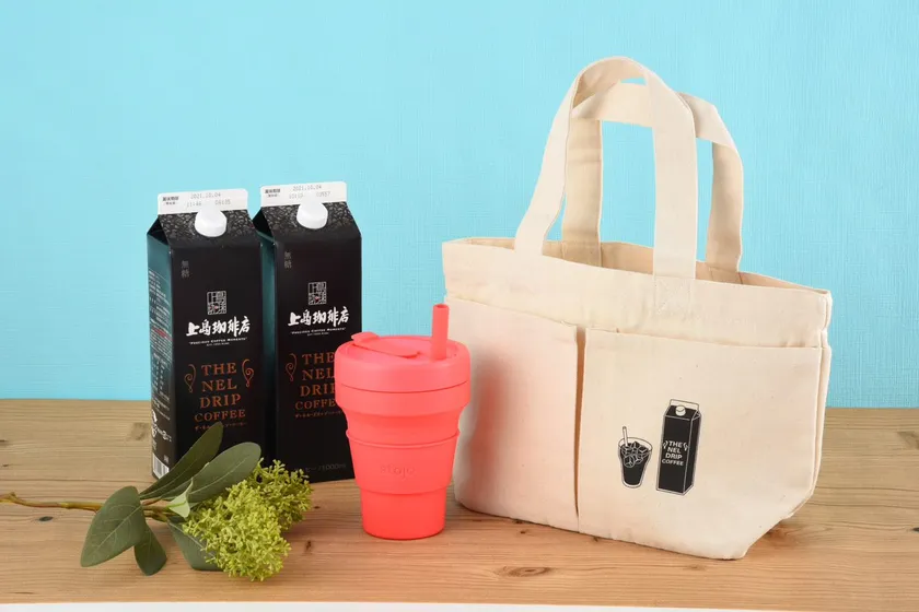 2021年の『HAPPY SUMMER SET』は、「stojo(ストージョ)」のタンブラーと、上島珈琲店のアイスコーヒーを、エコバッグにもお使いいただけるオリジナルデザインのコットンバッグに詰めてご用意しました。