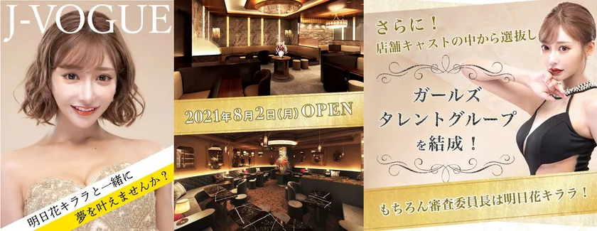銀座を中心に飲食店事業を展開するオルフェグループは、2021年8月2日(月)に明日花キララさんプロデュースの高級キャバクラ「J-VOGUE(ジェイヴォーグ)」をオープンします。また、コロナショックに見舞われた銀座の“夜の街”を再び盛り上げるため、「J-VOGUE」の店舗キャストの中からメンバーを選抜し、芸能活動を行うガールズタレントグループを結成します。当オーディションの審査委員長は明日花キララさんが務めます。