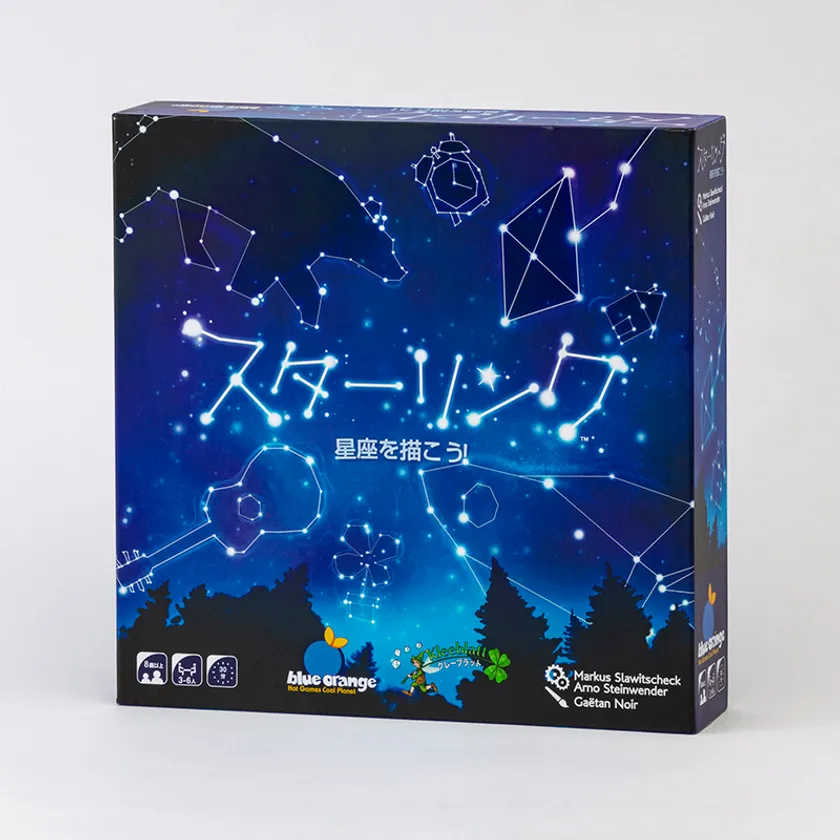 【スターリンク 星座を描こう!】は当社が先日発売した【フィッシュクラブ】と同様に、ドクターエウレカやゴブレットゴブラーズなどを制作したブルー・オレンジ社より2020年に発売された新作のボードゲームで、発売当初から現在にいたるまで世界中で大きな反響を巻き起こしています。
