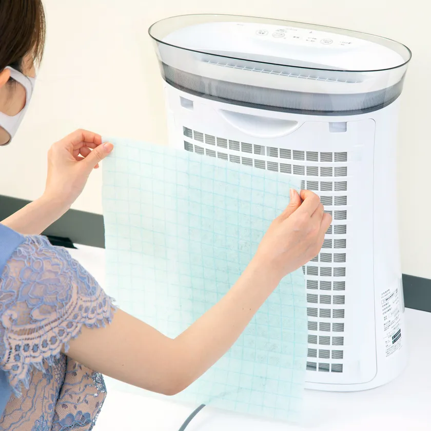 また、外側から貼るだけの簡単タイプのため汚れたら交換し、一般ゴミとして処分できます。花粉の時期や窓を開けられない環境など様々な場面で活躍する空気清浄機と感染が気になる今、衛生的な暮らしをするサポートアイテムとしてぜひご活用ください。