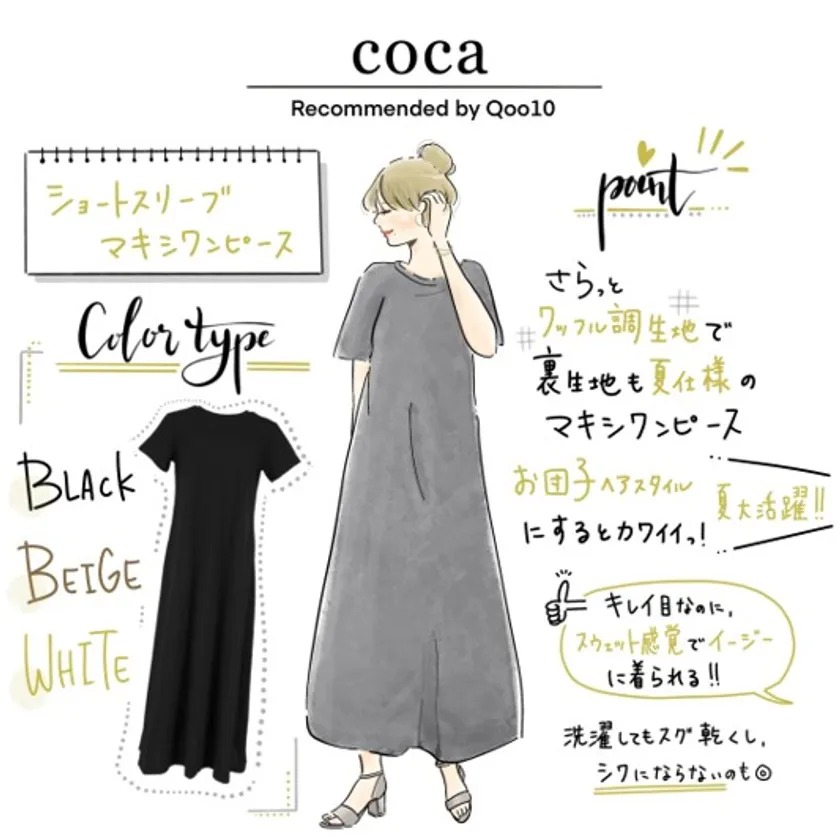 人気のコーナー、Qoo10 コーデ『今日のりおポチ』では、内田理央さんのこの夏のおススメファッションアイテムとしてcoca(コカ)のショートスリーブ マキシワンピースが紹介されました。