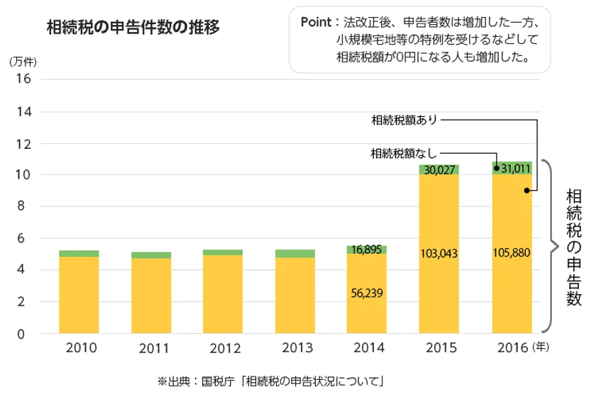 2017年 遺産にかかる基礎控除の引き下げとなった「相続税改正」以降、相続税の申告者数が倍増となり、より相続が身近なものとなりました。遺産相続は相続税がかかる方だけでなく、亡くなった方の財産・権利・義務を引き継ぐ事であり、決して富裕層の方のみが直面することではなく、誰しもが直面するものとなります。