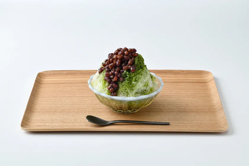 「宇治抹茶金時 ~山本山×榮太樓~」は、山本山の宇治抹茶と榮太樓のみつあめを合わせた特製みつと、ツヤがあり粒ぞろいの北海道産小豆をトッピング。全体的に甘さ控えめで、最後のひとさじまでさっぱりと美味しくお召し上がりいただけます。