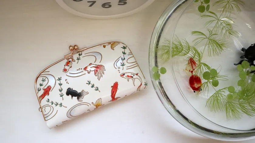琉金/らんちゅう/オランダ獅子頭/和金/蝶尾/出目金/青文魚の7種類の金魚を上から見たところを意匠化しました。その美しい姿からもわかるように、金魚は観賞用に改良された魚です。