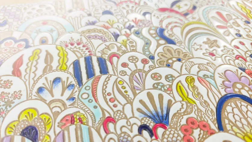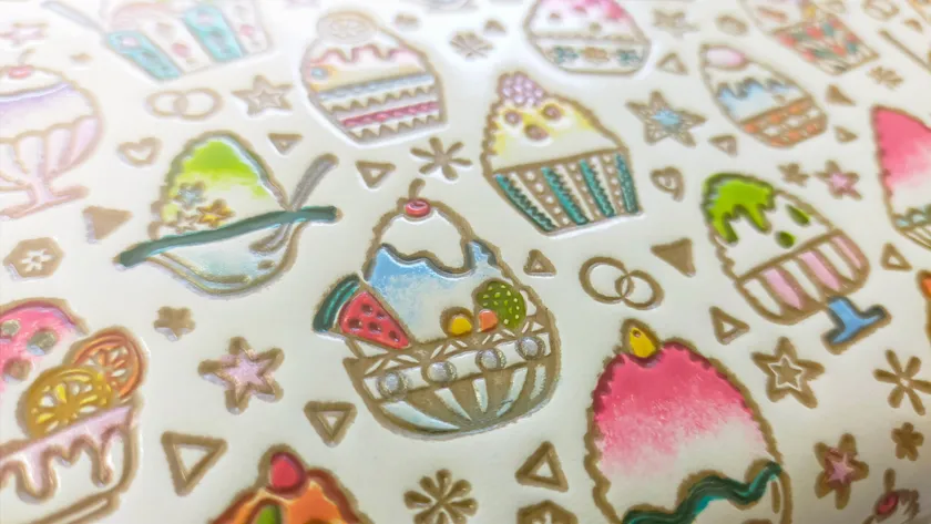 職人が一つ一つ筆で色付けをしているので、豊かな彩りと、筆が織りなす細かな表情は、手に取るたびにほっこりと心和みます。