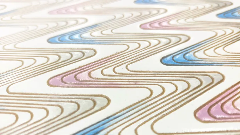 彩色をした革に、漆を使い、真菰(まこも)という植物の粉を留める「錆入れ(さびいれ)」という技法で仕上げている、独特な工芸品です。
