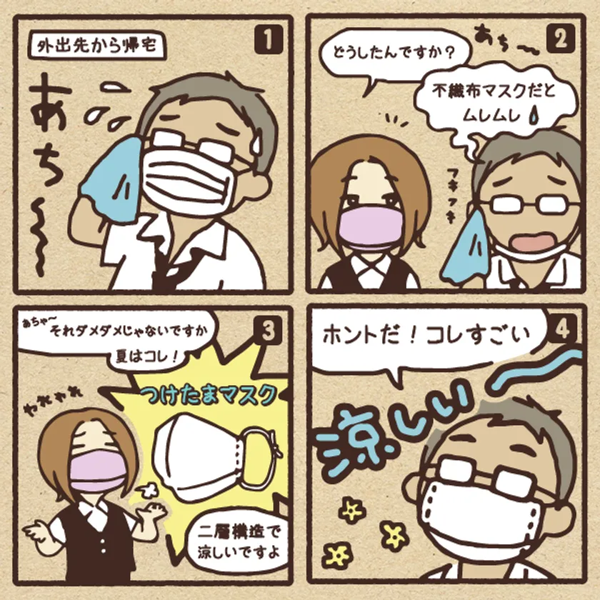 夏を涼しく快適に過ごせるよう“2段構造”で息が抜けるため、蒸れ知らずの仕様になっています。暑い夏、不織布マスクのムレムレでかなりストレスになります。そんな方にオススメのストレスフリーな「つけたまマスク」です。