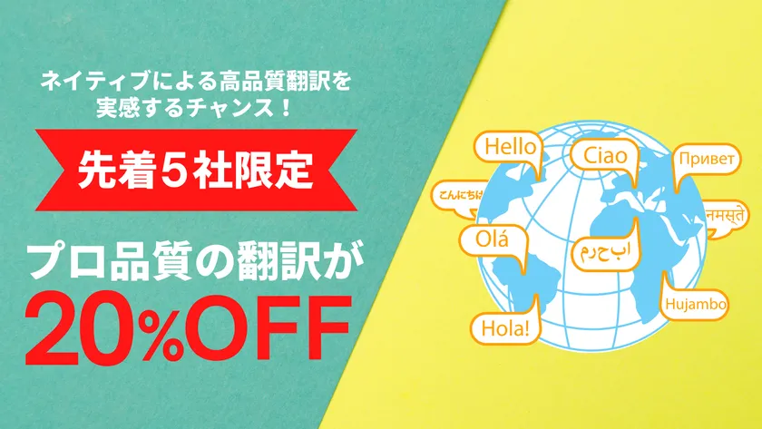 ネイティブによるワンランク上の高品質な翻訳を実感! 先着5社限定で翻訳サービス20%OFFキャンペーンを開始