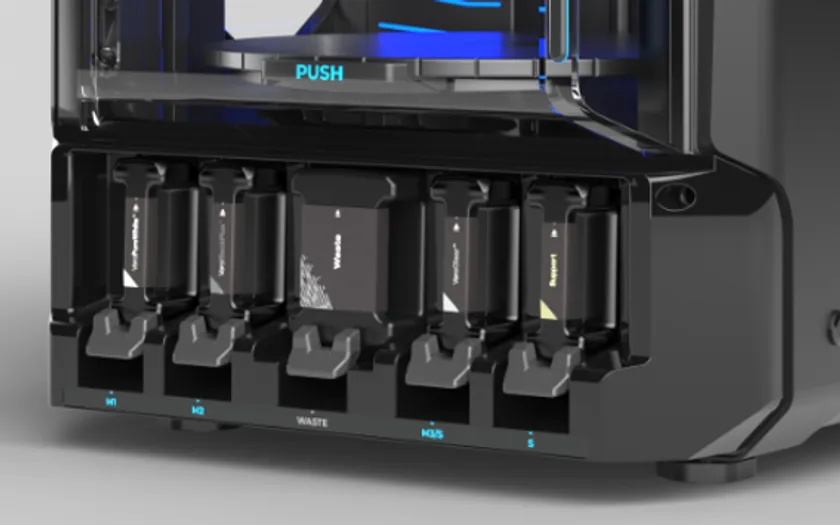 モデル材、もしくはサポート材を2本差ししている場合はホットスワップ機能により、片方の材料がなくなり次第もう片方のカートリッジに自動的に切り替わります。また、1本のみで使用している場合に材料の残り残量が少なくなった場合には登録されているメールとソフトウェアのプッシュ通知によりアラートが出て、そこから25分間は造形スピードを落として交換時間に充てることができます。