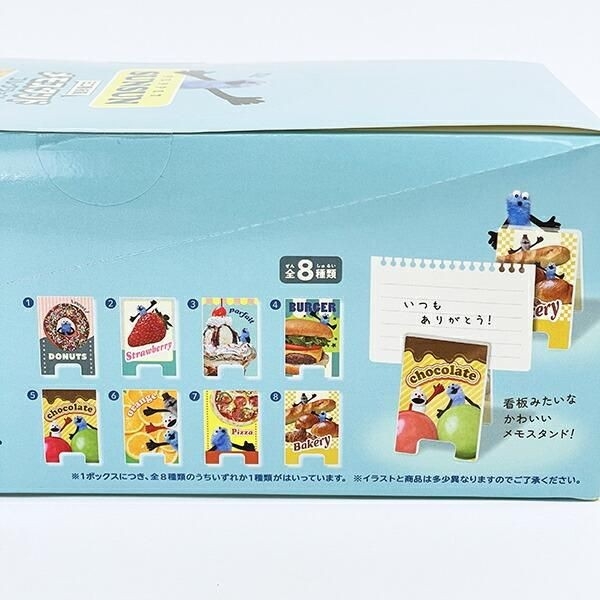 ミニ看板風のメモスタンドが全8種。どれも食べ物がテーマのポップなデザインです。