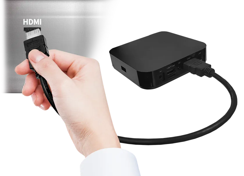 複雑な放送機器などが不要でセットトップボックスを設置するだけで、企業向けサイネージを簡単に使用することが可能です。また、PCやスマートフォンからアクセス可能なCMSですべてのサイネージの管理が可能です。