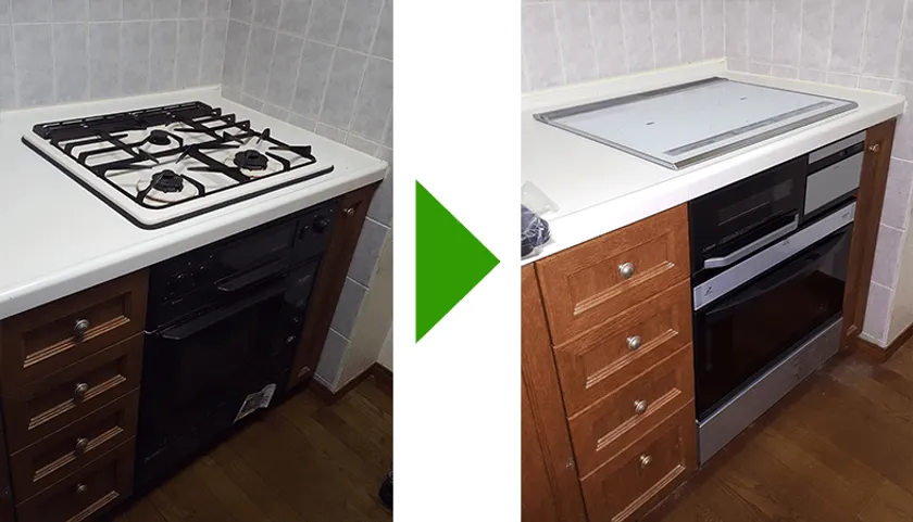 <当社でガスからIHコンロに切り替える場合の例>