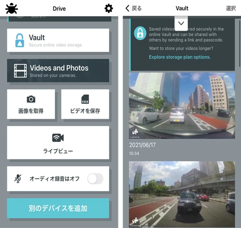 Wi-Fi搭載による映像転送機能に加え、新たな記録媒体として、プライバシー保護を施したGarminクラウドへの自動アップロード機能「Garmin Vault」を新たに追加。クラウド上で確認・編集・共有が可能です。保存期間は、24時間保存の場合は無料ですが、サブスクリプションサービスを導入し、最大30日間の保存が可能となります。