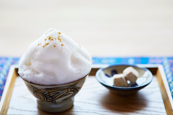 星のや沖縄では、滞在中に自然とやちむんの魅力に触れられるように、客室やラウンジなど、施設内の様々な場所でやちむんを取り入れています。ウェルカムティーとして提供している沖縄の伝統茶「ぶくぶく茶」には、読谷村内の3つの工房のマカイ(茶碗)を用意し、その個性を楽しめるように揃えています。